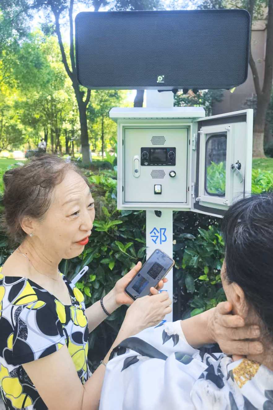 转机出现在今年5月。在关东街道及光电园牵线下,社区通过基层治理交流会,引入光电园企业武汉帝东科技有限公司(简称“帝东科技”)研发的声帘定向声技术。经过多轮调试及协商,首批设备在红郡小区广场舞中心点位试运行。上线一周后,社区居民噪音投诉量降至零。