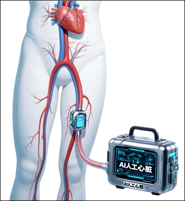AI人工心脏是一种部分或完全替代自然心脏给人体供血的辅助装置。简单来说,它就像一个“会思考的泵”,不仅能像传统人工心脏一样将血液泵送到全身、维持血液循环,还能通过AI算法实时分析患者身体状态,自动调整工作模式。