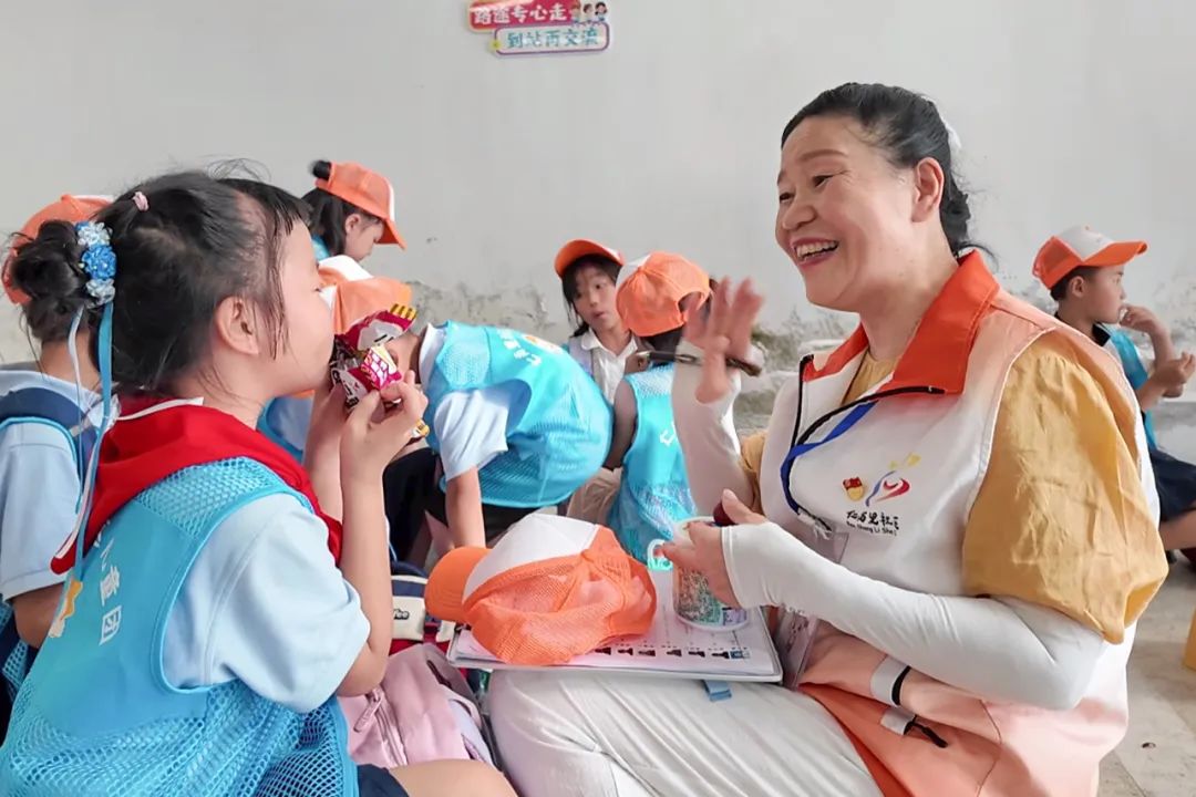 等到孩子们陆续放学走来,志愿者会给他们戴上帽子、披上小马甲,挨个做签到登记。“放学时人流量非常大,主要是为了方便区分与看护。”志愿者樊公强介绍道。
