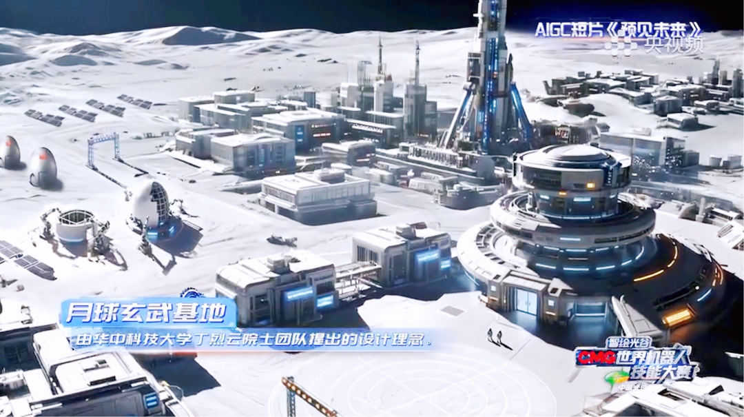 开幕式分为“从青铜到硅基”“从代码到具身”“从历史到未来”三大篇章,以机器人和舞者共演人机协奏开场,呈现代码驱动下的“数字生命”觉醒;以“2049月球基地”为背景设定,通过AIGC短片《星际任务》和交响乐作品《欢迎》共同引入开幕式主持人——机器人“筑月”,赋予技术以情感温度和生命意象,在具象化的未来构想中开启对人机共生理念的深层探讨。