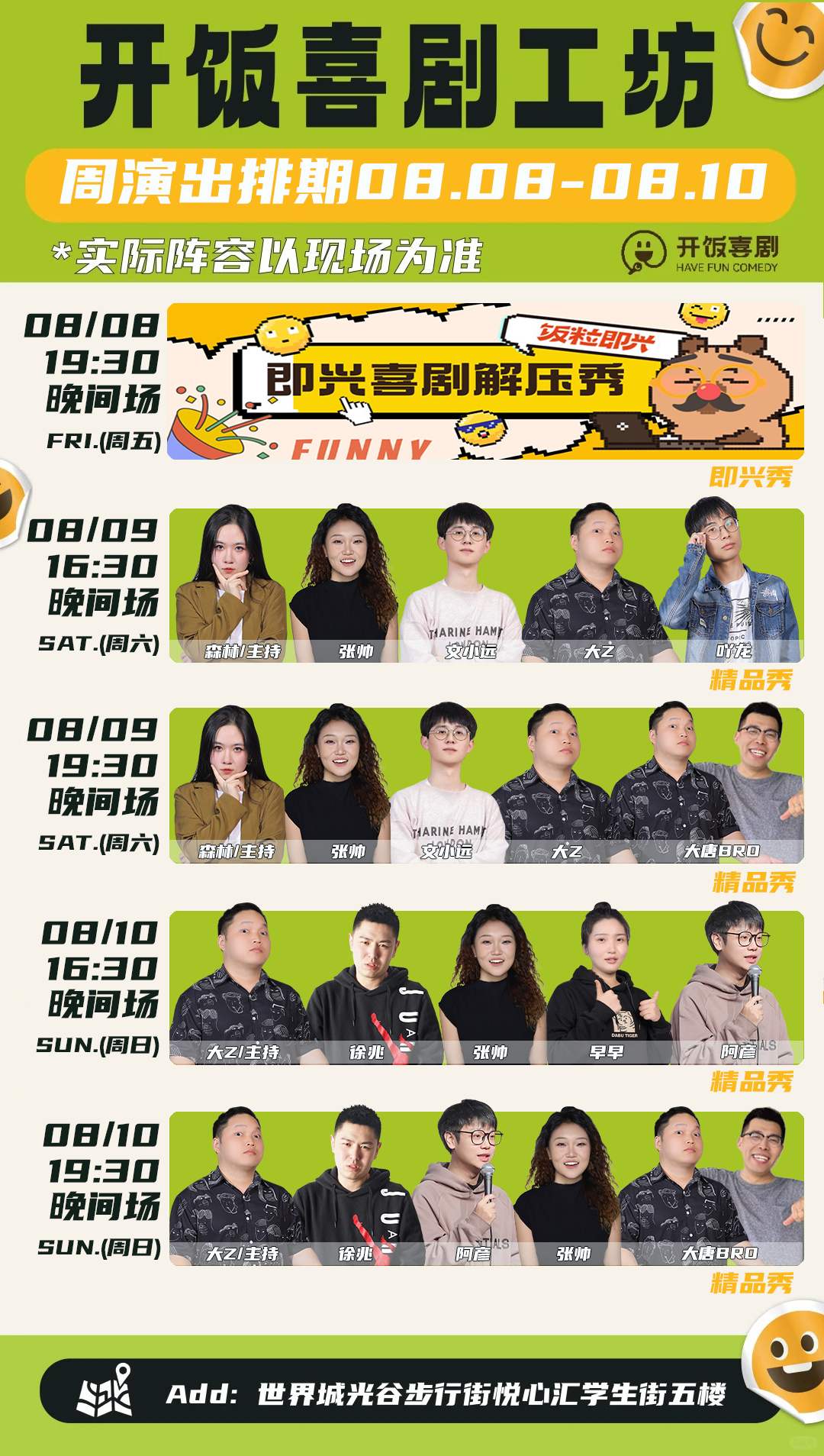 地点:光谷步行街悦心汇学生街5楼(瀑布广场北侧)开饭喜剧工坊
