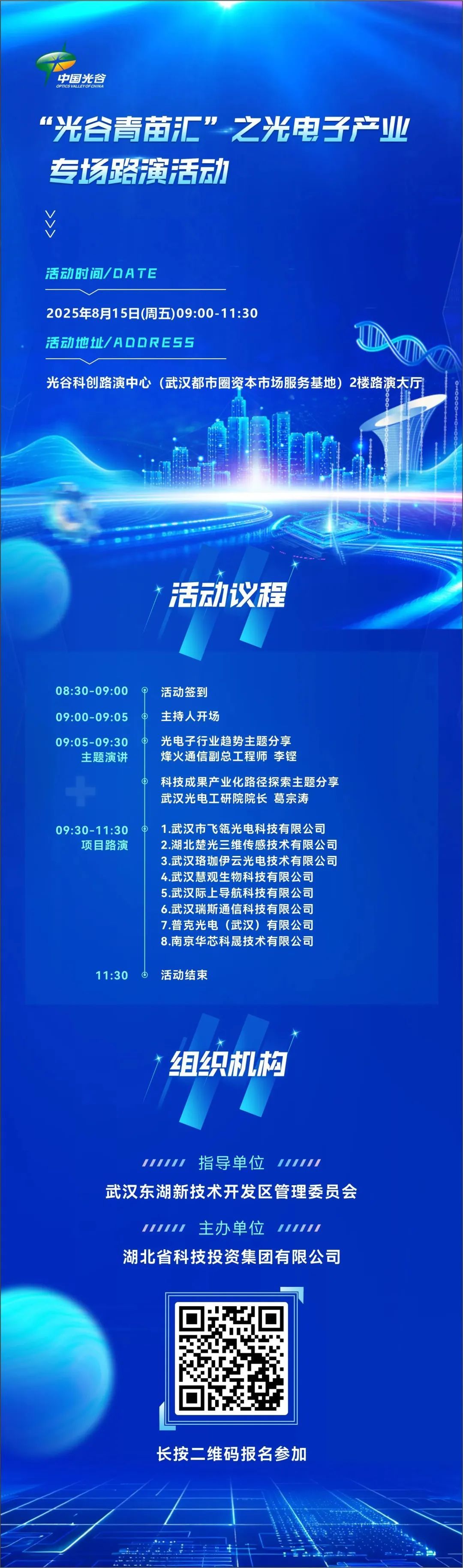 近期,光谷将举办多场创新创业活动,涵盖光电子信息、新材料、激光、文化创意等领域,进一步激发城市创新活力。