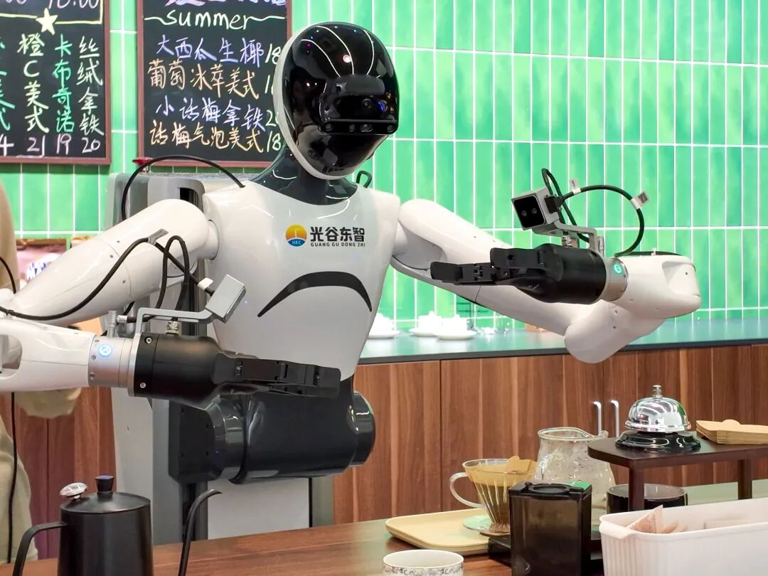 光谷东智人形机器人正在做咖啡