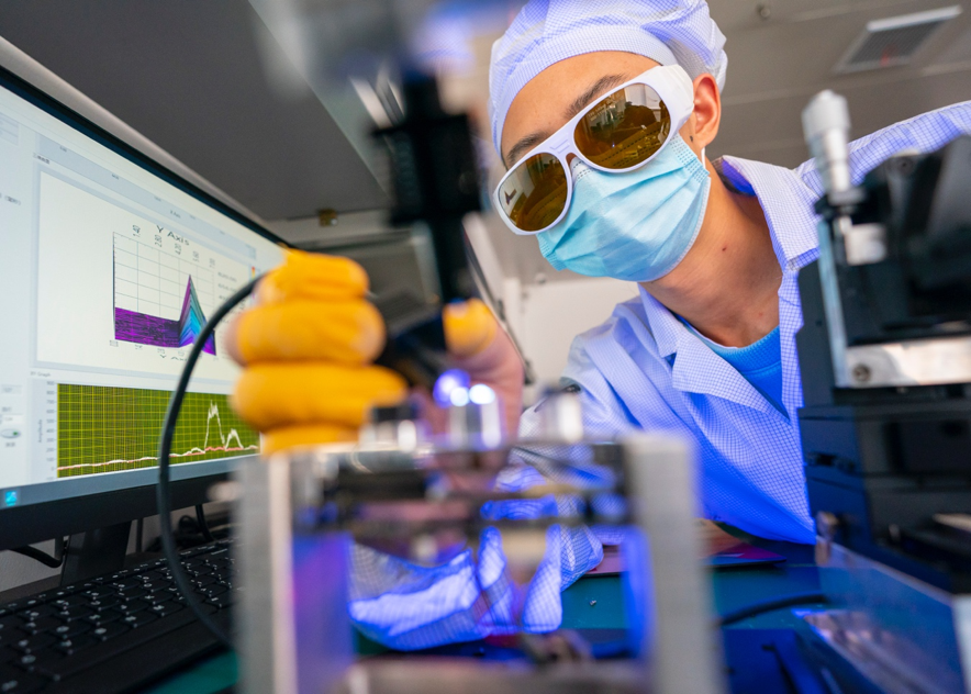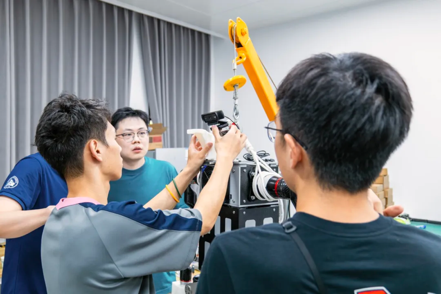 灵途科技工作人员在调试、校准固态激光雷达传感器光路