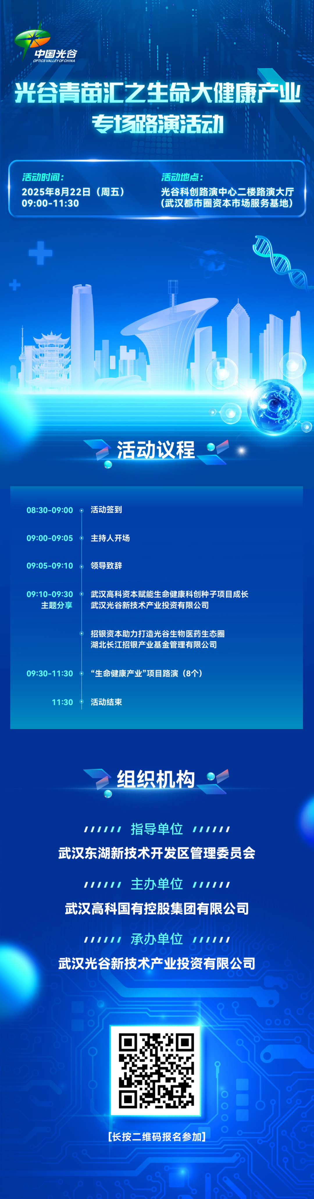 主办单位:武汉国家生物产业基地建设服务中心、武汉高科国有控股有限公司、湖北省科技投资集团有限公司、武汉光谷金融控股有限公司