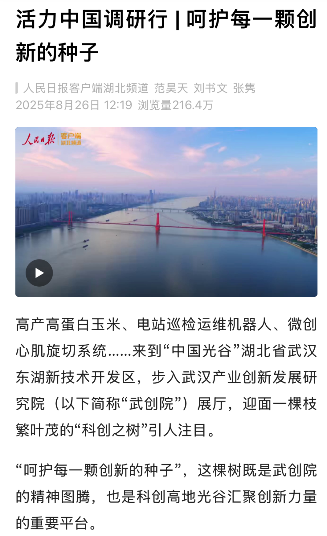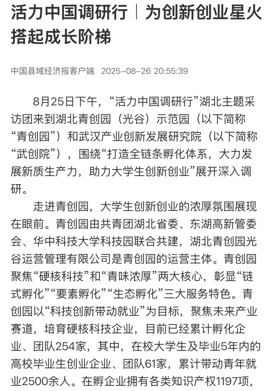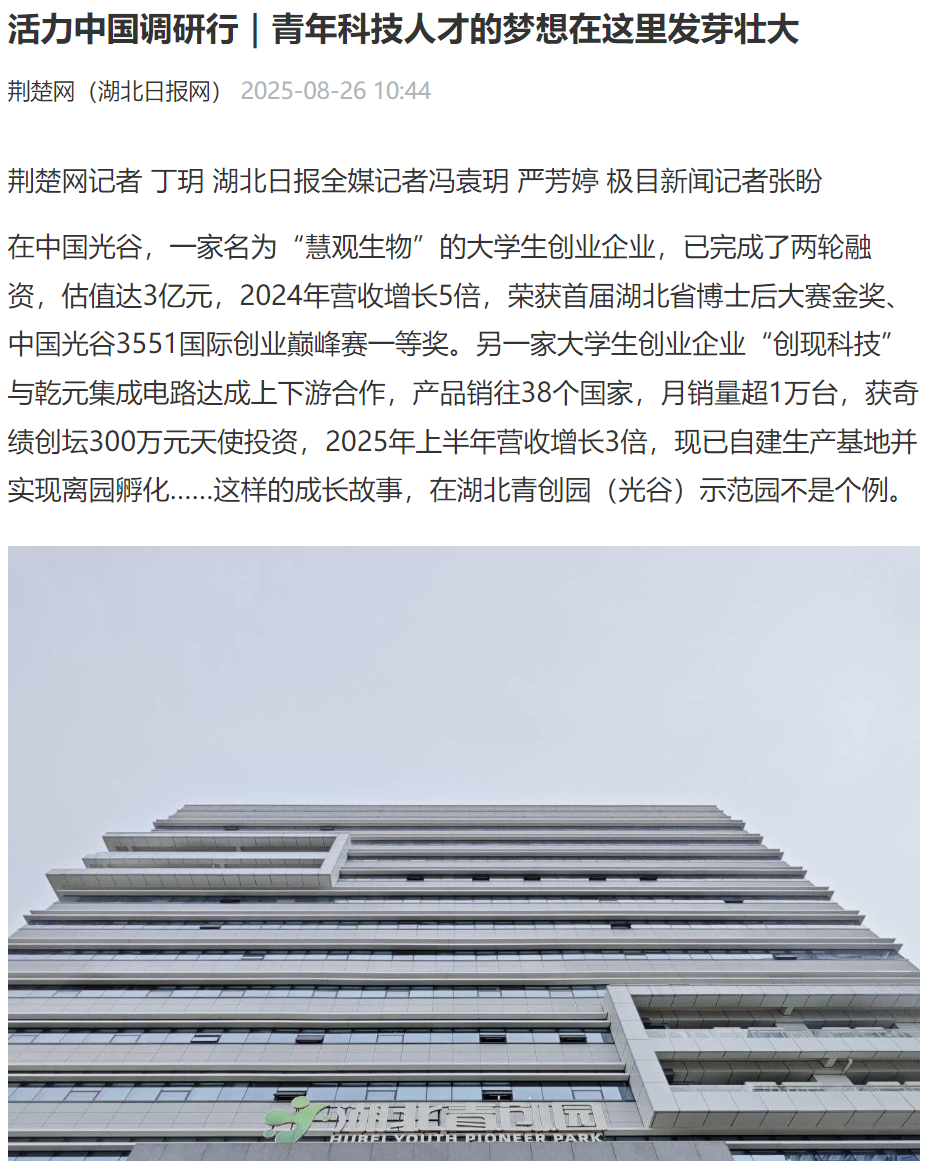 光明日报记者王禹欣说:“我了解到这里很多青年的创业‘家底’来源于读书时的课题。光谷聚集百万大学生、超15万家企业,产学研协同创新在这片创业沃土上蔚然成风。”