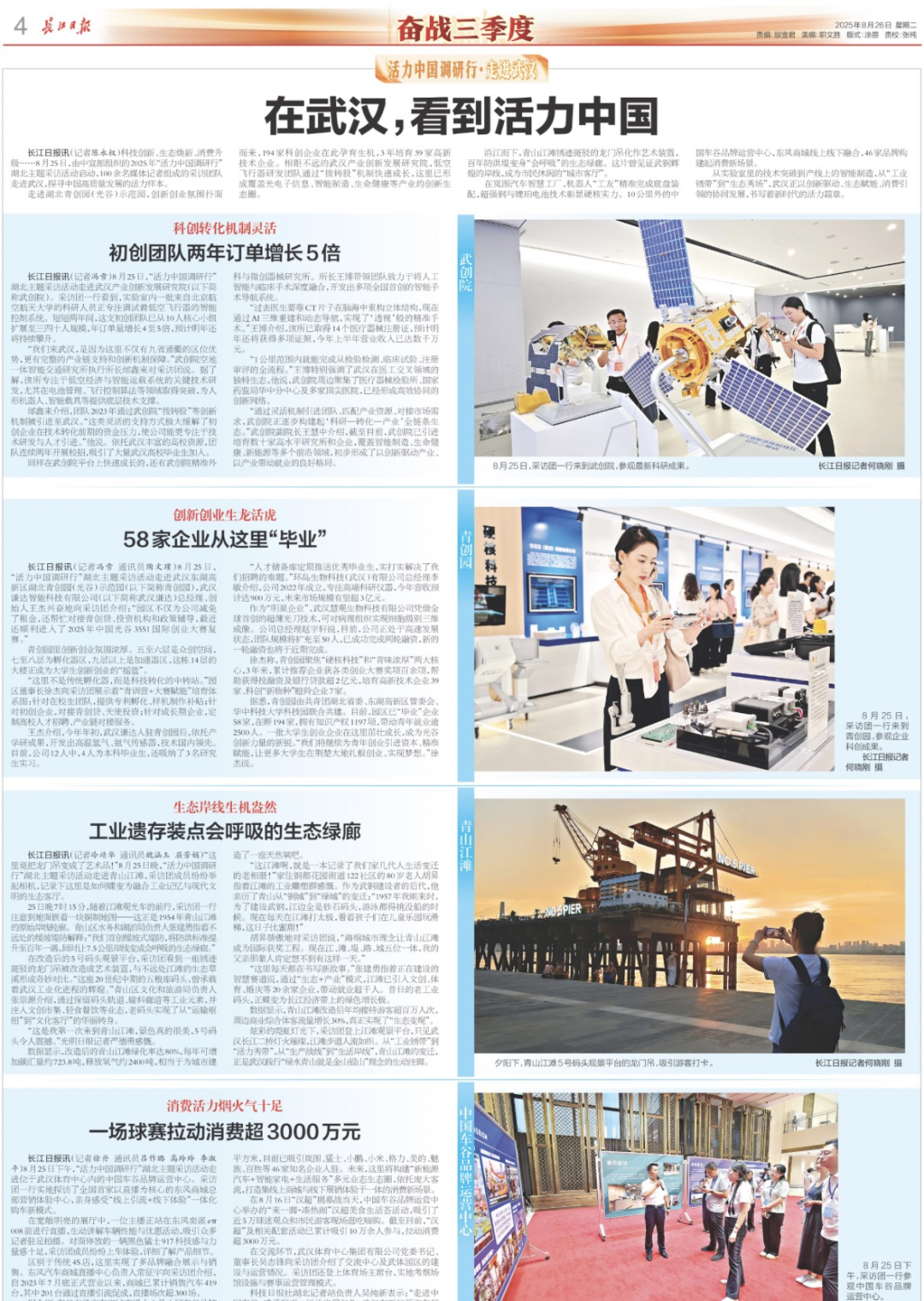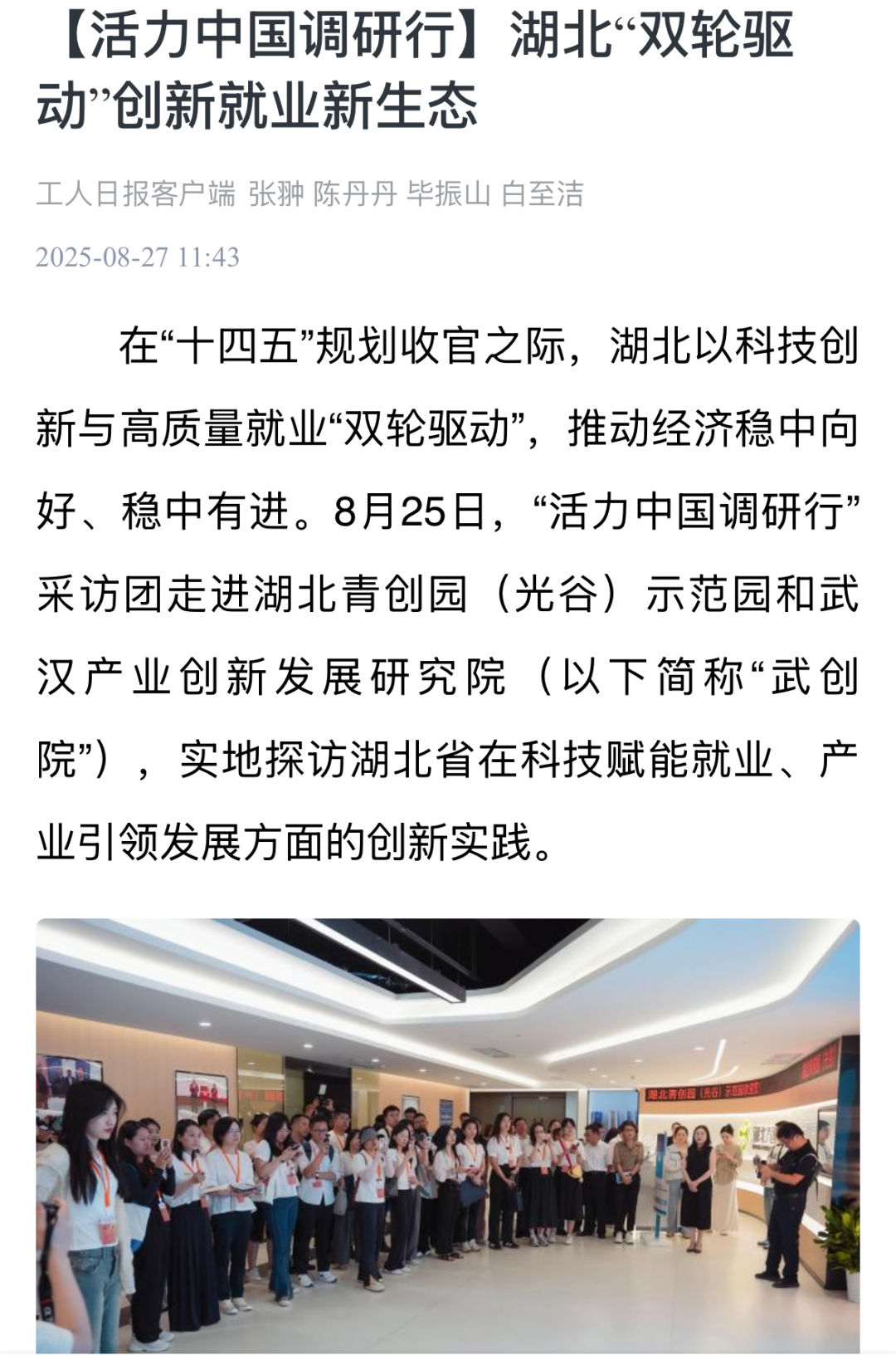 8月25日,2025年“活力中国调研行”湖北主题采访活动启动。来自人民日报、新华社、中央广播电视总台等中央省市主要媒体的近60位记者走进光谷,参观科技创新成果。