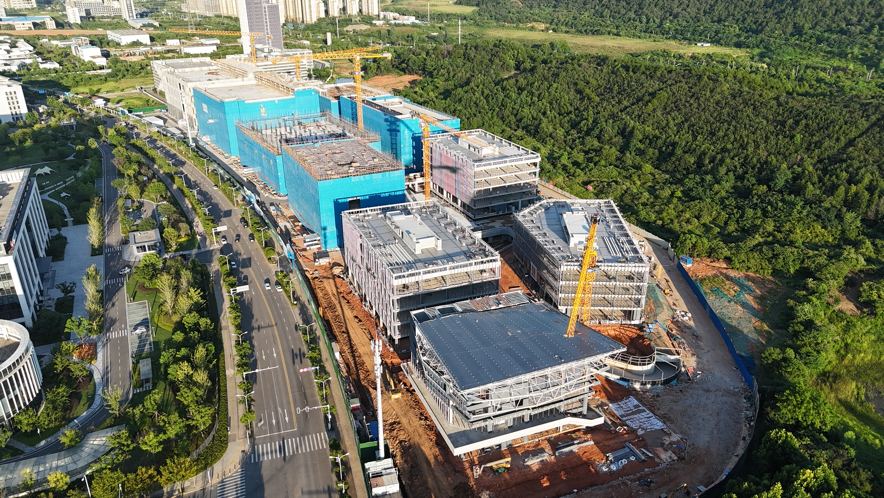 目前创新街区各项工作正在紧锣密鼓开展中,部分项目已初见成效。其中,化合物半导体孵化加速及制造基地项目主体结构已封顶,预计于2026年9月30日前建成投用。
