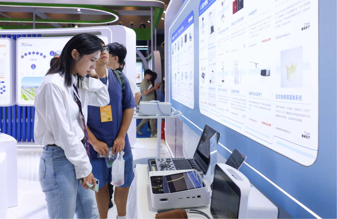 在生物制造体验展区入口处,联影医疗的工作人员指着电子屏幕介绍道:“这是今年4月发布的联影‘元智’医疗大模型,基于该模型衍生出来的胸部一扫多查智能体,可依托胸部平扫影像,自动检出肺结节、主动脉增宽、冠脉钙化等73种胸部常见异常,并输出报告,让医生的工作效率得到较大提升。”