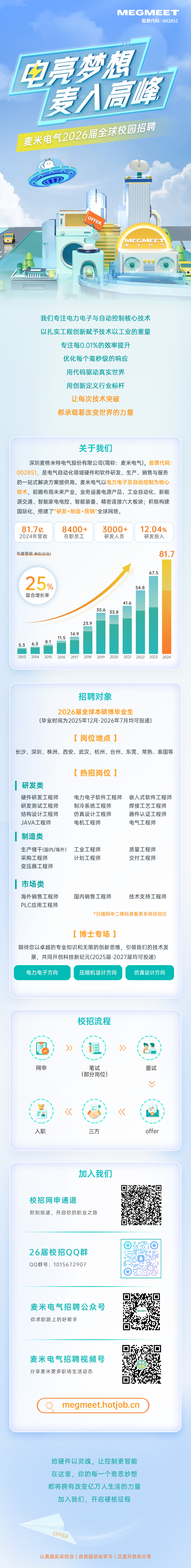 麦米电气是电气自动化领域硬件和软件研发、生产、销售与服务的一站式解决方案提供商。公司以电力电子及自动控制为核心技术,前瞻布局未来产业,业务涵盖电源产品、工业自动化、新能源交通、智能家电电控、智能装备、精密连接六大板块。