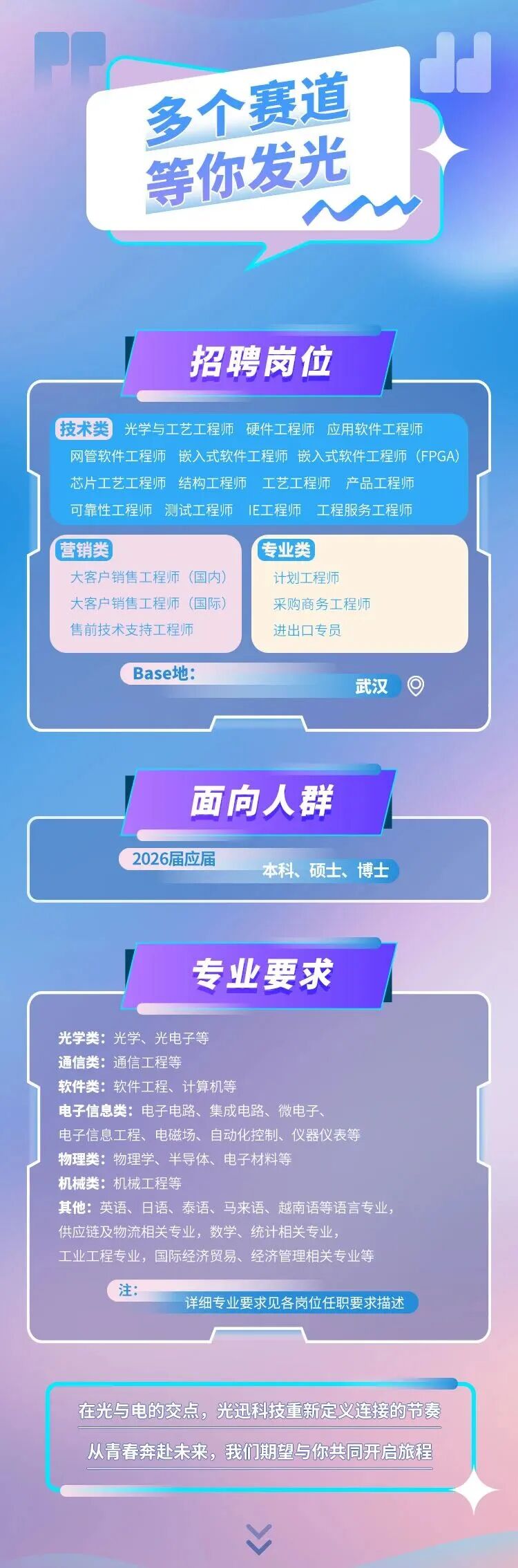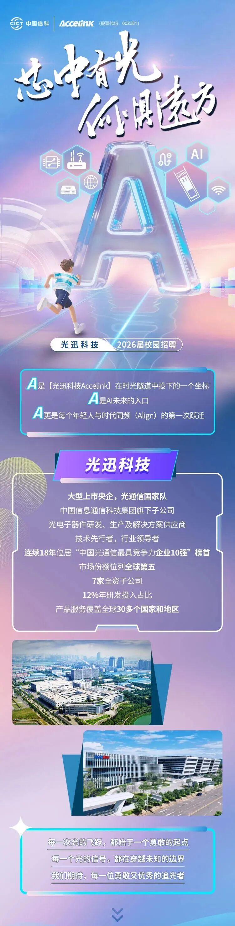 武汉光迅科技股份有限公司是中国信科(国务院国资委直管央企)旗下主力上市企业,专注于光通信领域近50年,是中国最早开展光电子芯片研发的企业,产品服务覆盖全球30多个国家和地区。