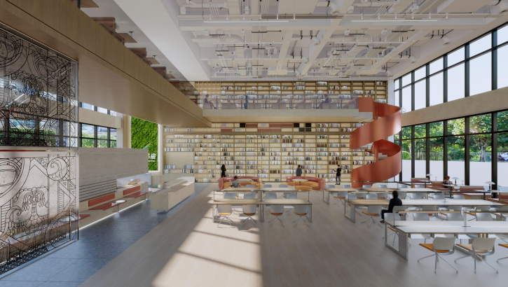 光谷书房·东湖科学城书院坐落于光谷科学岛武汉芯光产业园(科创中心一期),面积1800平方米,设285个座位,以“科技+楚文化”为核心理念,打造沉浸式阅读体验,建设湖北东湖科学城精神文化地标。