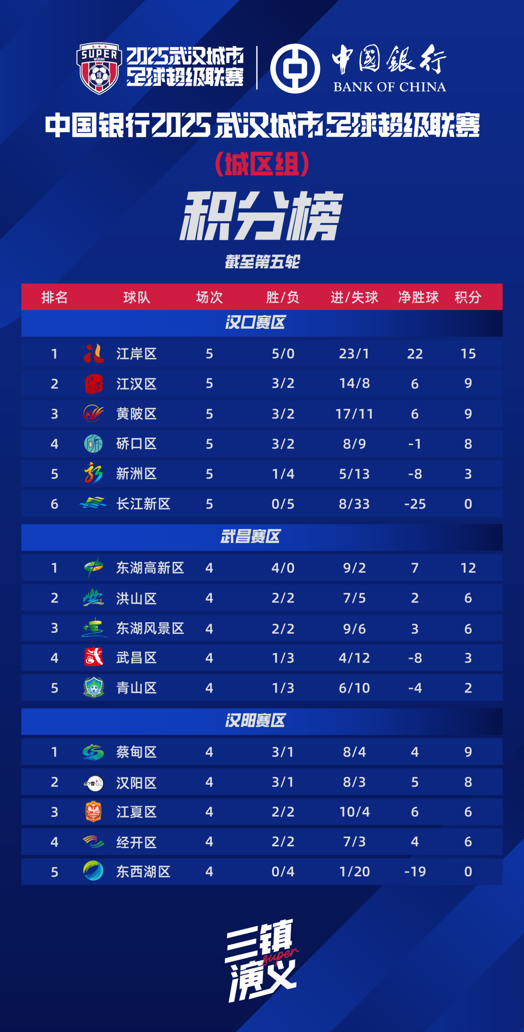 经过一个多月的激战,“汉超”联赛城区组的较量即将进入终极段落。江岸队在汉口赛区中五战全胜,东湖高新队在武昌赛区四战全胜。此次,两支“全胜之师”狭路相逢,胜负难料,接下来的较量充满悬念。