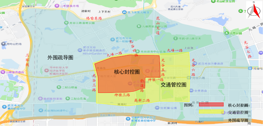10月1日活动当天,7:00至11:30,豹中街、光谷三路(神墩三路至高新大道方向)禁止车辆通行;7:30至11:30,高新大道(光谷三路至光谷五路)禁止车辆通行。
