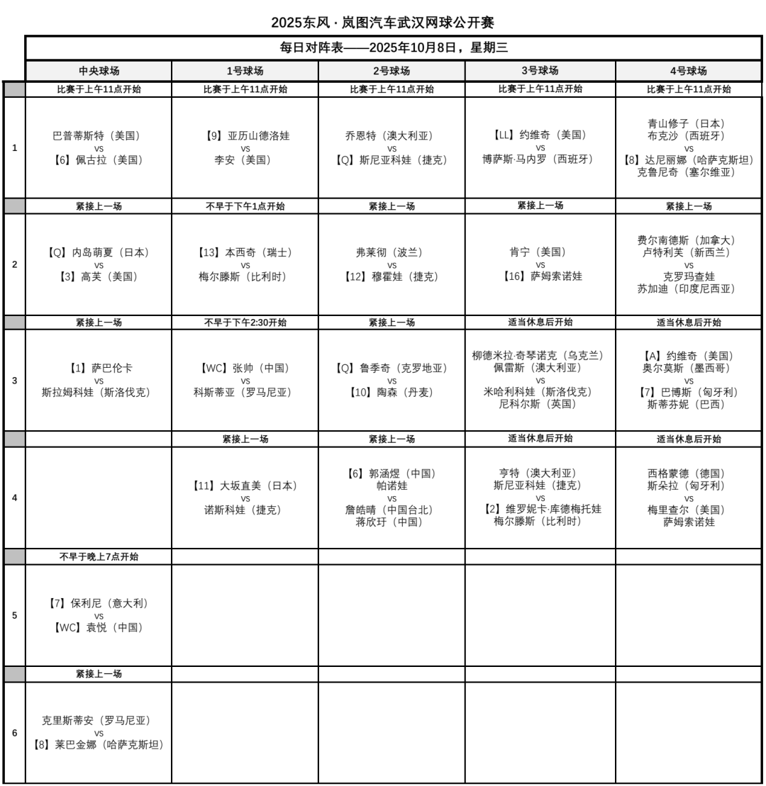 截至目前,本届武网中,中国金花袁悦、张帅成功晋级单打第二轮,比赛将在今日进行,届时,袁悦将迎战赛会7号种子保利尼,张帅的对手则是罗马尼亚选手科斯蒂亚。此外,武网“三冠王”、卫冕冠军萨巴伦卡与3号种子高芙都将于今日强势登场。