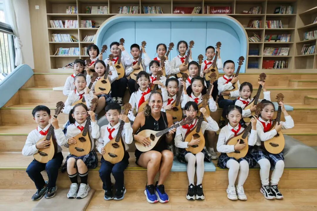 10月9日下午,武网球员奥尔莫斯走进光谷第十七小学,参与了“武网球星校园行“活动。奥尔莫斯在音乐教室聆听孩子们用鸣鸠琴演奏《兰亭序》《小美满》,并亲手体验中华小四弦,观赏跆拳道、武术和舞龙舞狮表演,与孩子们一起打乒乓球。连连称赞“我喜欢这些龙,太酷了。孩子们打得真好!”