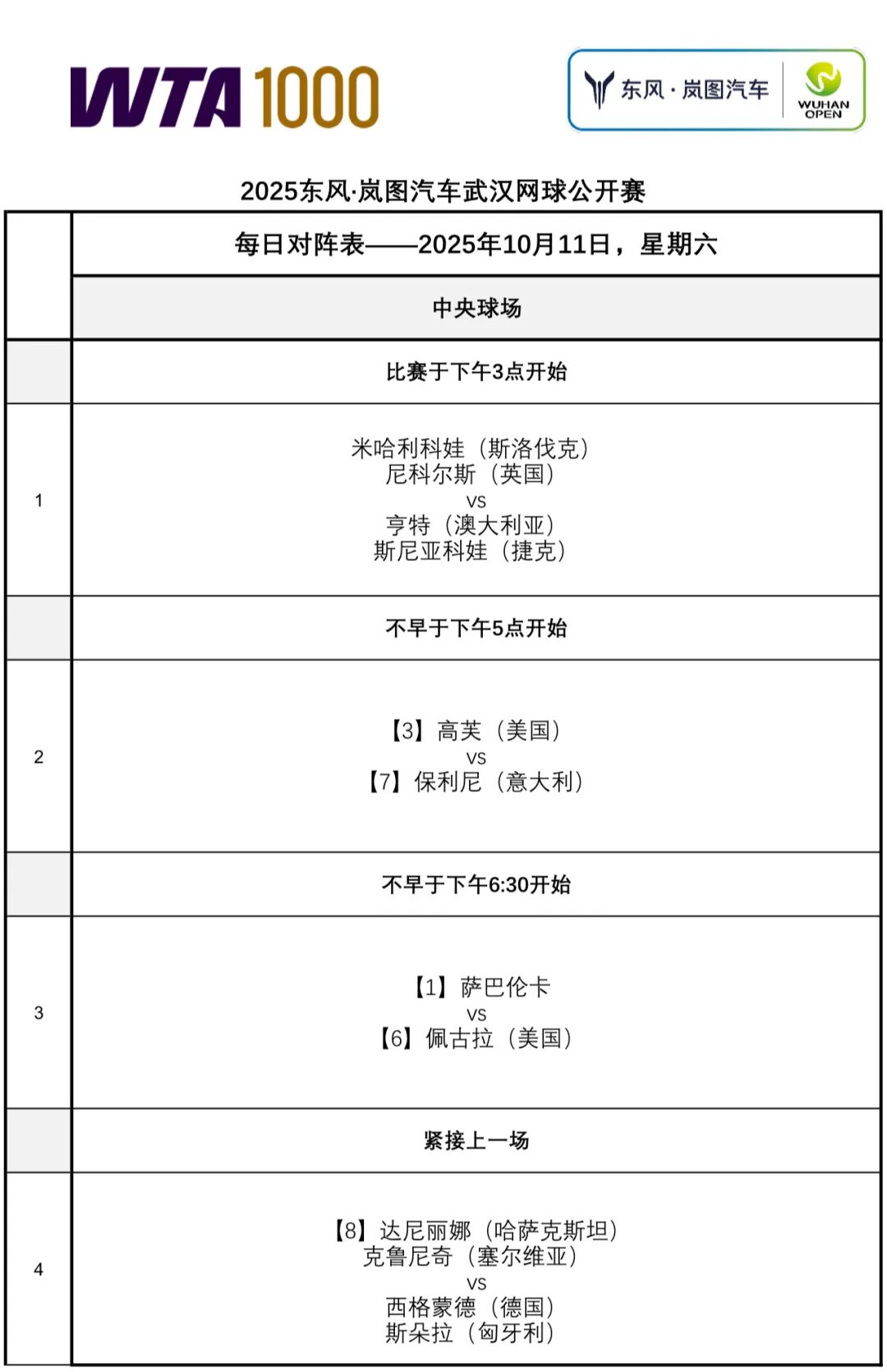 至此,2025年武网女单四强对阵形势已明朗:上半区由萨巴伦卡迎战佩古拉,下半区则由高芙对阵保利尼。两场高水平的半决赛对决,将于今日进行。