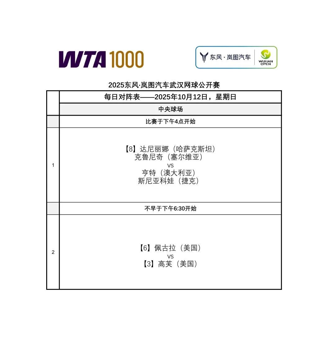女双决赛收官后,佩古拉与高芙将在光谷国际网球中心中央球场上演女单决赛巅峰对决。两位球员状态正盛,且都是首次进入武网总决赛,谁将最终加冕值得期待。