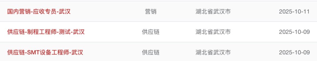 市场总监、市场经理、嵌入式开发工程师、系统硬件工程师、工艺工程师、web前端开发工程师、工艺主管