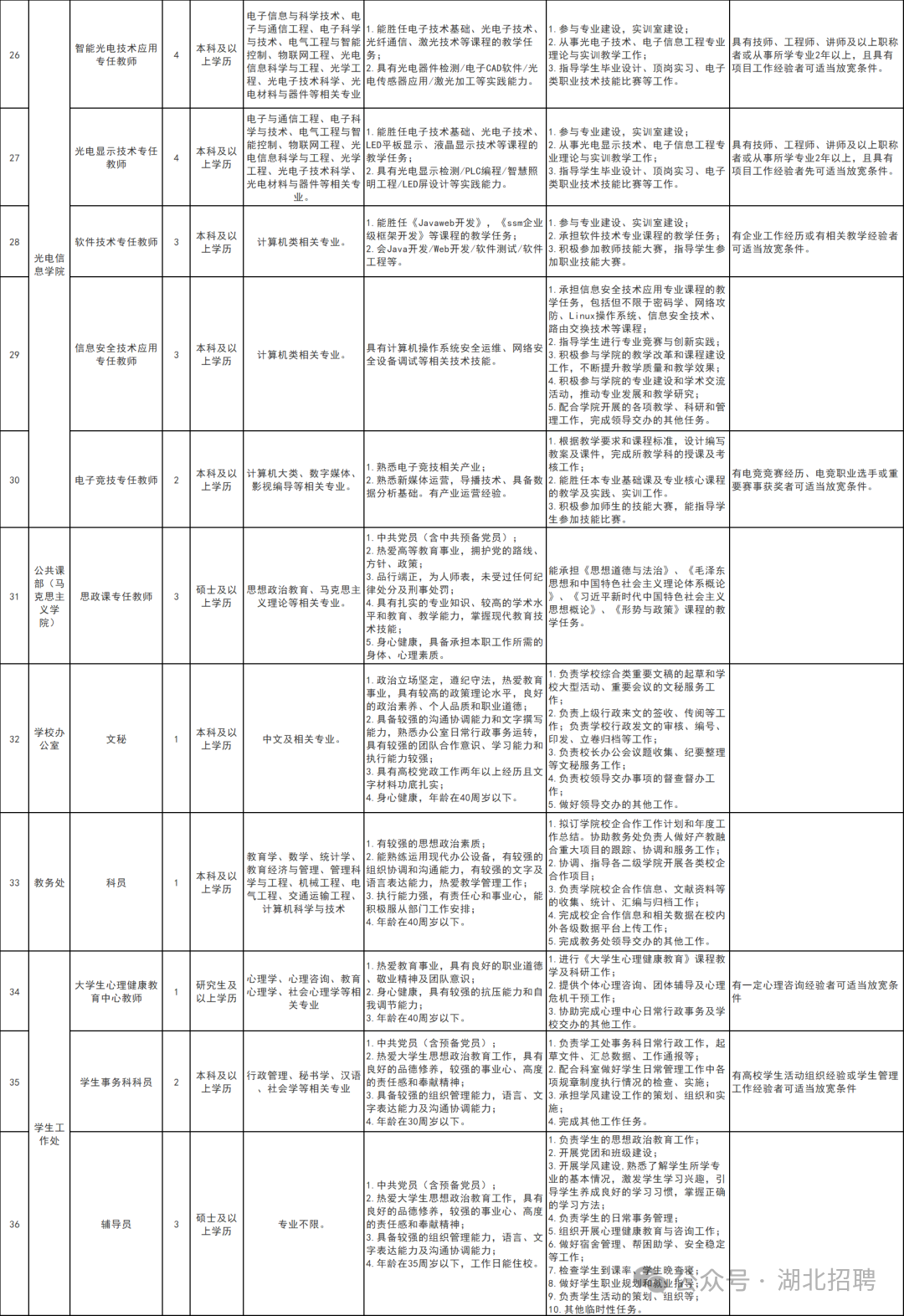 部分岗位要求: