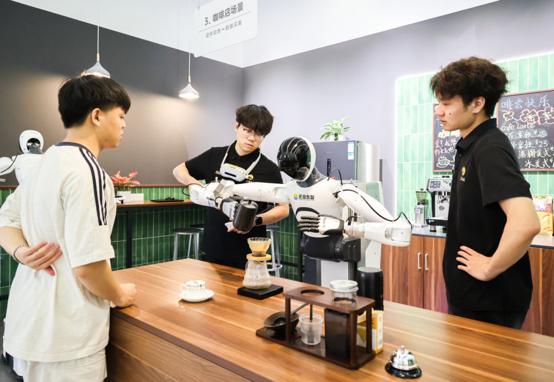 咖啡店场景内,廖宗凯等人带机器人一遍遍地冲咖啡。另一角的数据审核区,秦臻和同事紧盯大屏,看着机器人各关节数据像心电图般起伏。“人形机器人冲一杯咖啡用时约5分钟,包括近9000帧的数据。期间,通过数据分析,‘钢铁侠’仿佛有了‘生命’。”这群年轻人感叹。