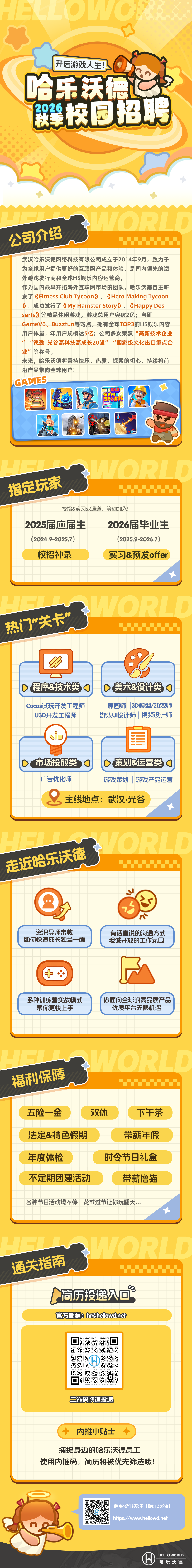 Cocos试玩开发工程师、U3D开发工程师、原画师、3D模型/动效师、游戏UI设计师、视频设计师、广告优化师、游戏策划、游戏产品运营