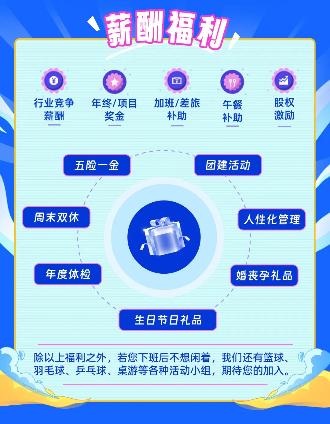 缴纳五险一金,享受带薪寒暑假、餐费补贴、节日福利、年度健康体检;额外为教职工购买额度 600 万元的商业保险,全方位守护教职工身体健康。