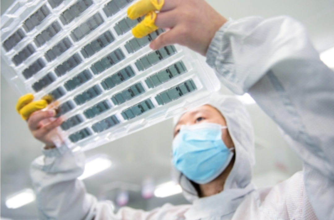 光谷已建成全球最大的光模块研发生产基地,图为华工正源工程师仔细检查光模块样品