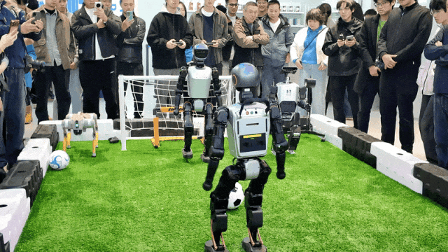 "这台‘楚宝’可以陪老人聊天,还能提醒吃药。那台‘天问’能在工厂巡检设备,检查温度和声音异常。还有‘光子’在首届世界人形机器人运动会上斩获赛会首金。”