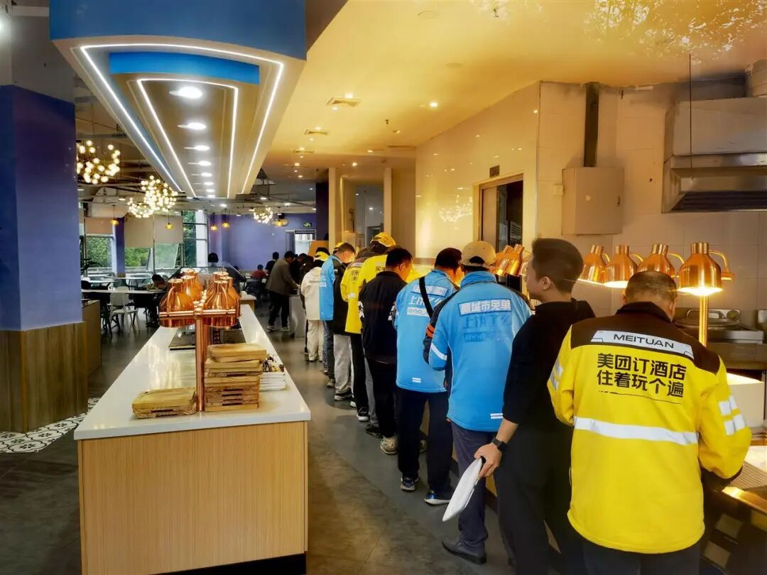 “小哥们素质都很高,他们在外跑了半天,饭量多一些,怕在前面把菜打完了,所以自觉避开中午就餐高峰期。”张建说,骑手们吃完后,还会主动把餐盘送到回收处,减轻店员负担。“这种默契是双方自然形成的。”