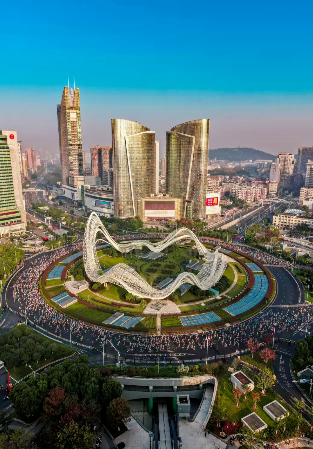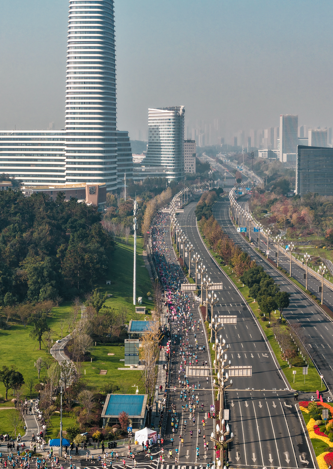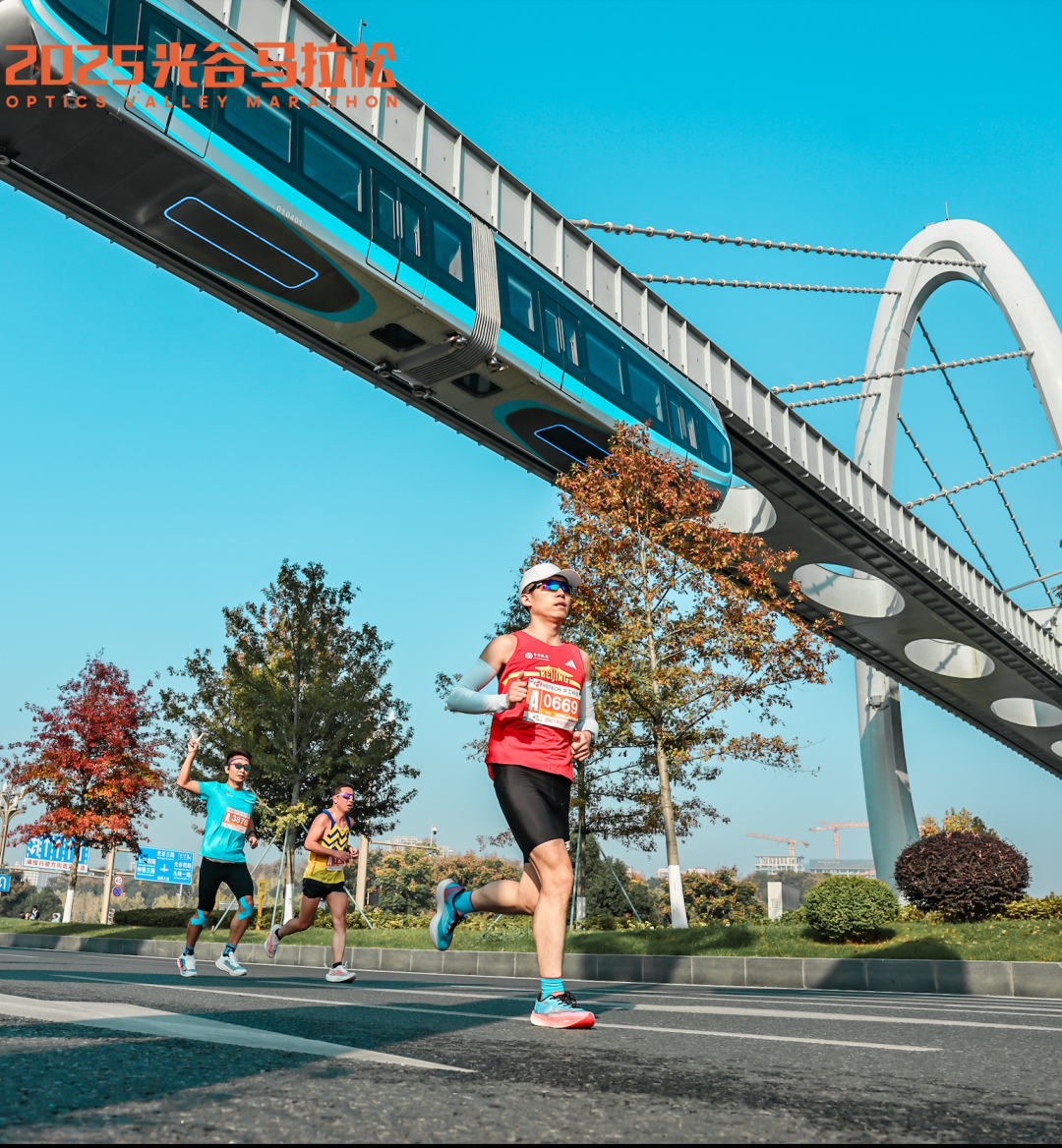 今年是光谷马拉松升级为全马后的第三届,赛事分为全马和半马两个项目。赛道延续了“一城两廊三区万企”的经典设计,选手们沿着光谷科技创新大走廊与中央生态大走廊一路向东,全程奔跑于光谷这片创新创业的热土之上。