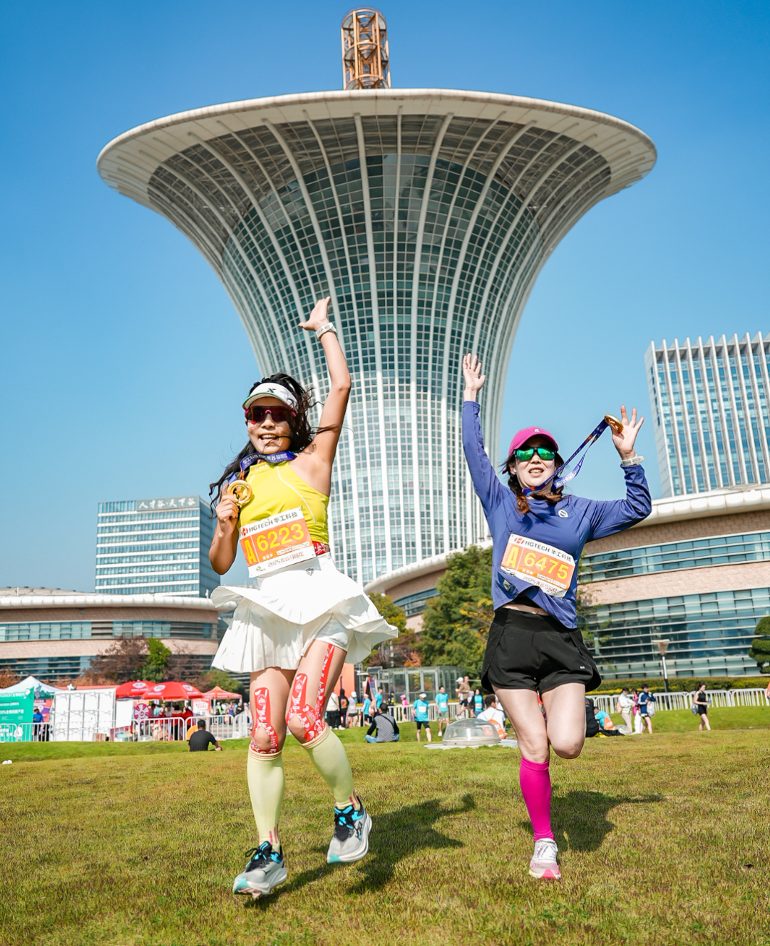 武汉选手熊娟以2小时44分03秒夺得全程马拉松女子组冠军,打破往届最好成绩纪录。熊娟也是2023年光谷马拉松半程马拉松女子组的冠军,她表示这次跑全马更加开心。“能经过光谷更多标志性的建筑,特别是‘马蹄莲’,感受到了光谷的科技活力!赛道两旁的市民也特别热情,能感觉到大家很欢迎我们来光谷比赛。”