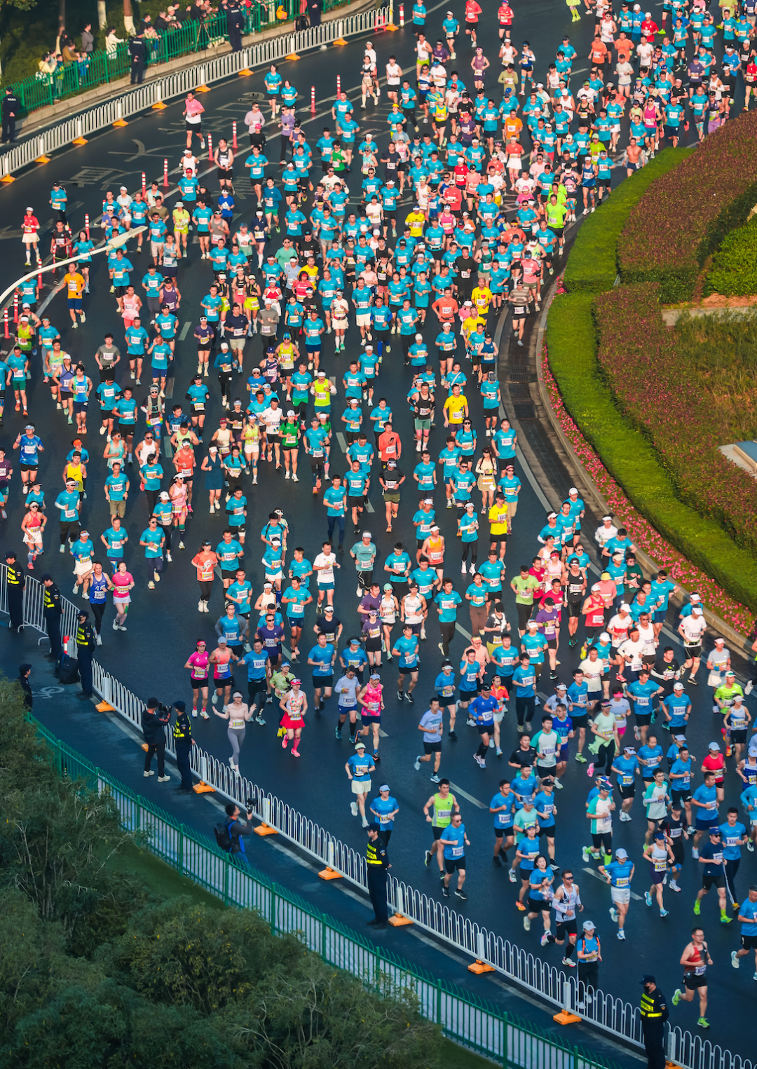 光谷马拉松致力于守护每一位跑者的生命健康,沿途设立25个医疗站、65个医疗哨点、91台AED,537名医护人员、3500名大学生志愿者、全体公安民辅警、城管队员、建设者为跑者提供保障服务。