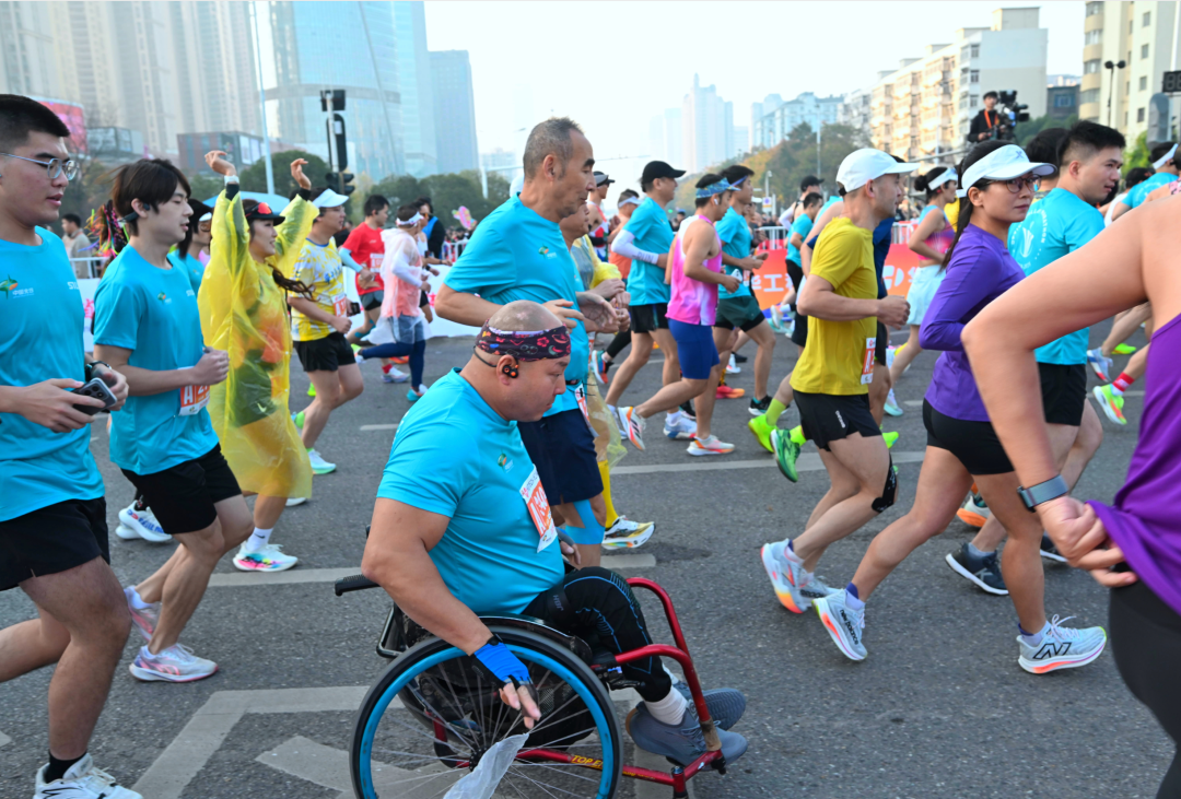 2025年光谷马拉松,既吸引了五湖四海的跑者,也有来自光谷各行各业的居民,在科技蓝T恤汇成的“海洋”中,本届赛事堪称一场点燃全城激情、提振光谷精神的全民狂欢。