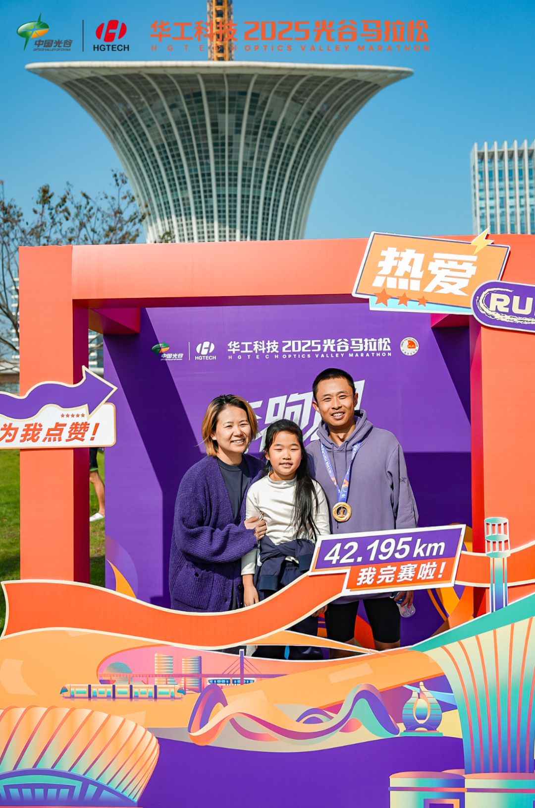 全马跑者龙桓家住华中科技大学正门对面,于他而言,光马的起点就是家的方向。“今年的光谷马拉松,我依然选择了全马,我老婆选择了半马,光马于我们,从来不是去征服远方。它是一场用脚步完成的、对家和爱情的年度巡礼。”