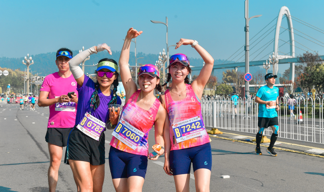 武汉本地跑者李维微和两位跑友一同来参加比赛,路上看到机器人表演,她感到很新颖,“没想到这么智能。平时很少到光谷来,昨天来领物,发现光谷真的发展很快。昨天也特地去感受了空轨,满满的科技感。”