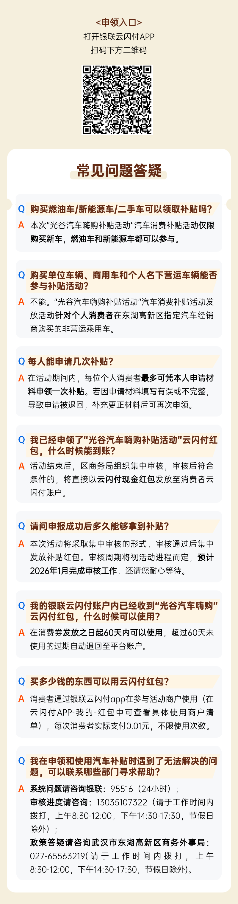 年底想要买车的朋友们注意啦!11月22日-12月31日,乐购武汉·光谷钜惠2025第三轮光谷汽车嗨购活动来了!活动期间,消费者购车最高可享6000元优惠,并可与国家、省、市相关活动补贴叠加使用。