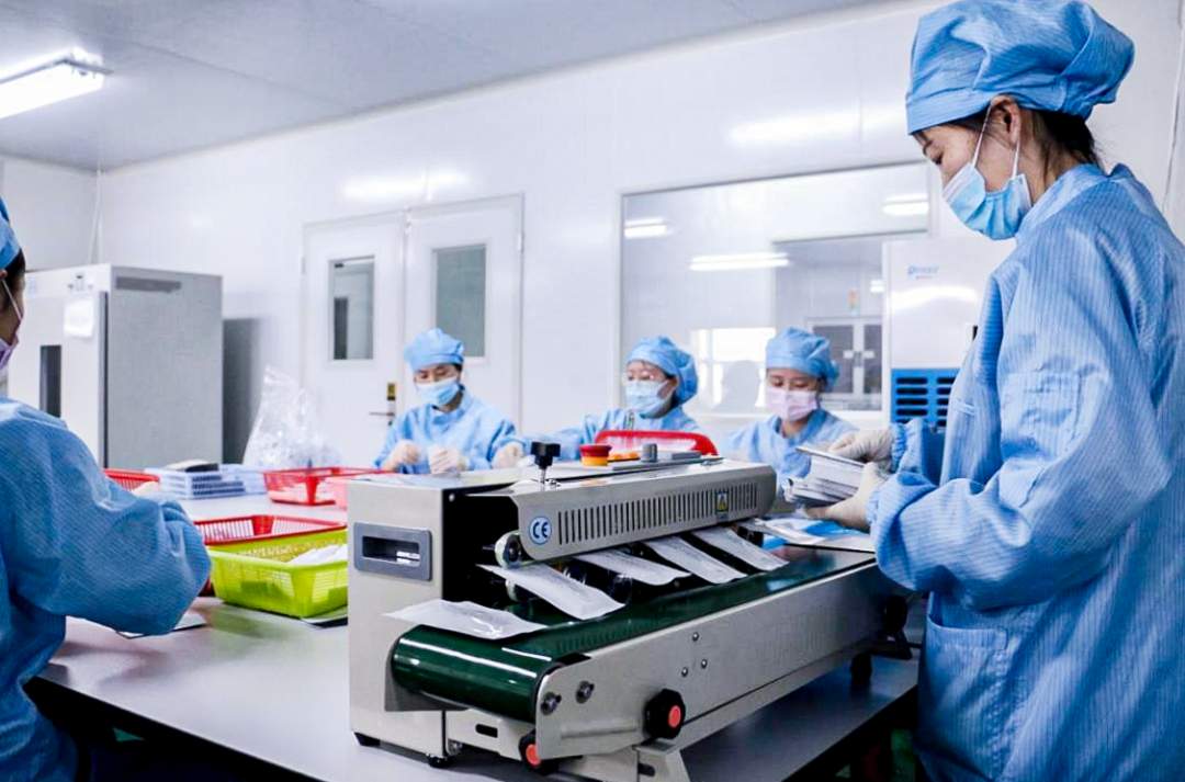 企业公共关系部总经理华水蓉介绍:“当前正处于甲乙型流感高发期,我们每周生产约30万人份的检测试剂盒,最高一天生产10万多人份,以满足全国各级医疗机构需求。”