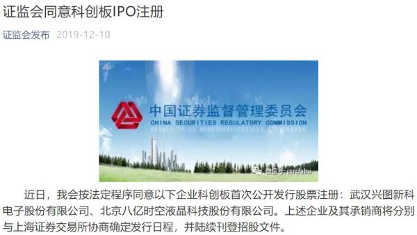 12月10日下午,中国证监会发布消息,同意光谷企业武汉兴图新科电子股份有限公司科创板首次公开发行股票注册。