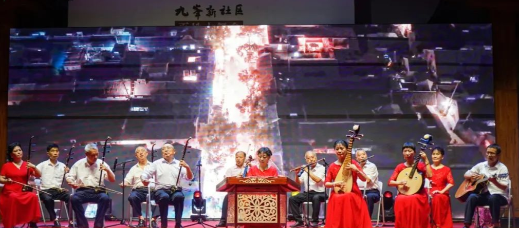台上,来自关东街玉龙岛社区的清风乐团演奏了一曲《扬州小调》,轻快的乐曲令不少观众陶醉。清风乐团是由玉龙岛社区及周边区域文艺爱好者组建而成的文化志愿服务队伍,平均年龄65岁。他们先后为周边社区、学校表演声乐和器乐节目30多场(次),广受居民群众的喜爱和欢迎。清风乐团团长吴乐平介绍,乐团以中老年人为主,现有35名成员都是来自关东街,乐团的每位成员都有三年以上玩乐器的经验,比较熟悉乐器的使用,这次排练了两个星期。“对我们这些中老年人来说,时间上比年轻的上班族可能要宽裕一些,通过乐器演奏陶冶一下心情,还可以提高自己的文化素养。”吴乐平说。“他们是光谷无数社区文艺志愿服务队伍的代表,他们演奏的《扬州小调》,既是幸福小调,也是盛世共享之歌。”东湖高新区有关负责人说道。“上下学,爱堵车,问题小,事特多……”花山街道红焰社区工作人员用快板形式,将真实发生在社区的《红焰的故事》搬上了舞台。“我们花了两天半作词,并从5月底组织大家进行排练。我们想通过这个节目,展现为居民办的实事。”红焰社区党委书记王晔说道。据介绍,此次文艺演出的优秀文艺节目大部分由光谷居民自编自导自演,讲述自己身边的故事,以此抒发自己的心声。