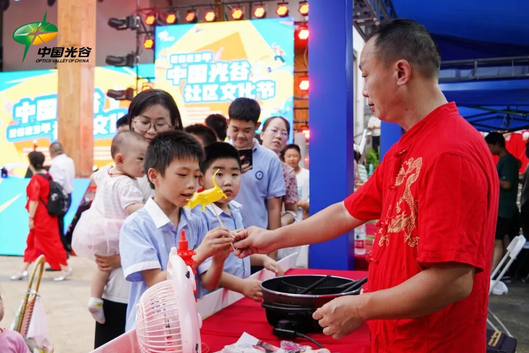 2023年中国光谷社区文化节以“植根社区、贴近百姓、惠民乐民”为宗旨,设置了优秀文艺节目演出、街道文化特色展示、创意文化市集、拍照打卡区等板块。既有丰富多彩的文艺节目,还有泥人、糖画、草编等非遗体验项目,更有小朋友喜欢的互动小游戏。社区文化节不仅是展示社区文化多样性的平台,也提供了居民欢聚一堂、交流互动的机会。参加展演的优秀文艺节目大多是居民志愿者们自编自导自演的作品,从不同的维度,讲述着光谷人生活在此,奋斗在此,享受幸福在此的自豪之情。“我工作在光谷,住在光谷,也在幸福的光谷享受着丰富多彩的文化。”现场观演者中,武汉市道德模范、志愿者胡洁是一名“光谷追光人”。她说,近年来,当她带领着志愿团队走进街道、走进社区送公益服务的同时,也感受到社区文化氛围渐渐变浓。