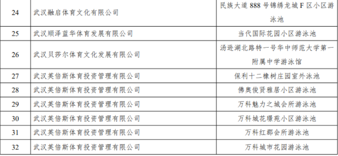 夏天是武汉市民亲水的季节。近期,光谷32家符合开放要求的经营性游泳场所名单公布。具体名单如下:
