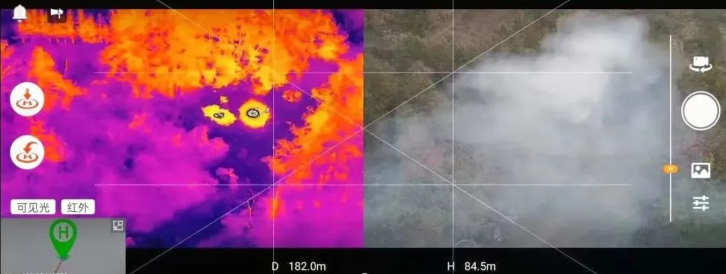 50公斤负载下,可续航30分钟,搭载4枚水基弹,灭火约200平米,同时拥有40倍可见光变焦和热成像,实现火点搜寻、热源识别、目标跟踪、定点抛投等功能……