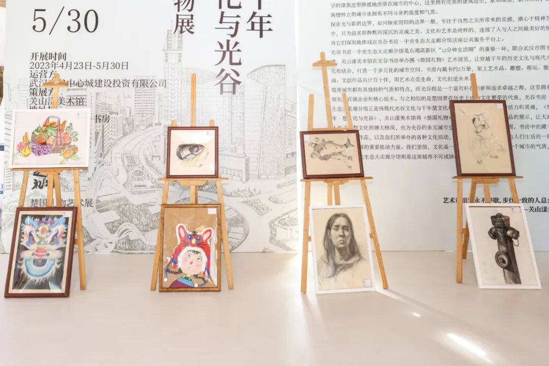 当前,“穿越千年·楚文化与光谷”——《楚国礼物》展正在书房展出,现代光谷文化与千年楚文化碰撞融合,艺术品、雕塑、潮玩、激光工艺画、文创一一呈现,全方位展示楚文化的博大精深。