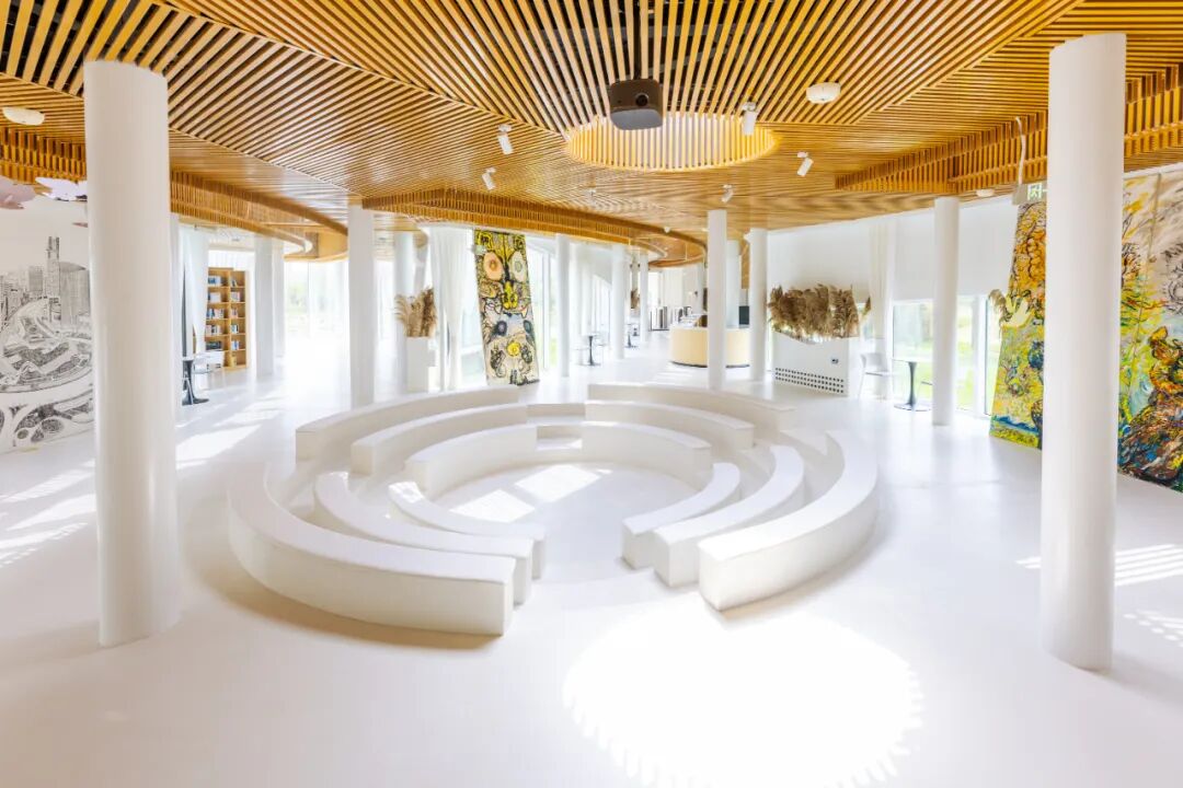 书房位于光谷中央生态大走廊光谷四路入口处,紧邻绿道,临水而居,总面积为714平方米。
