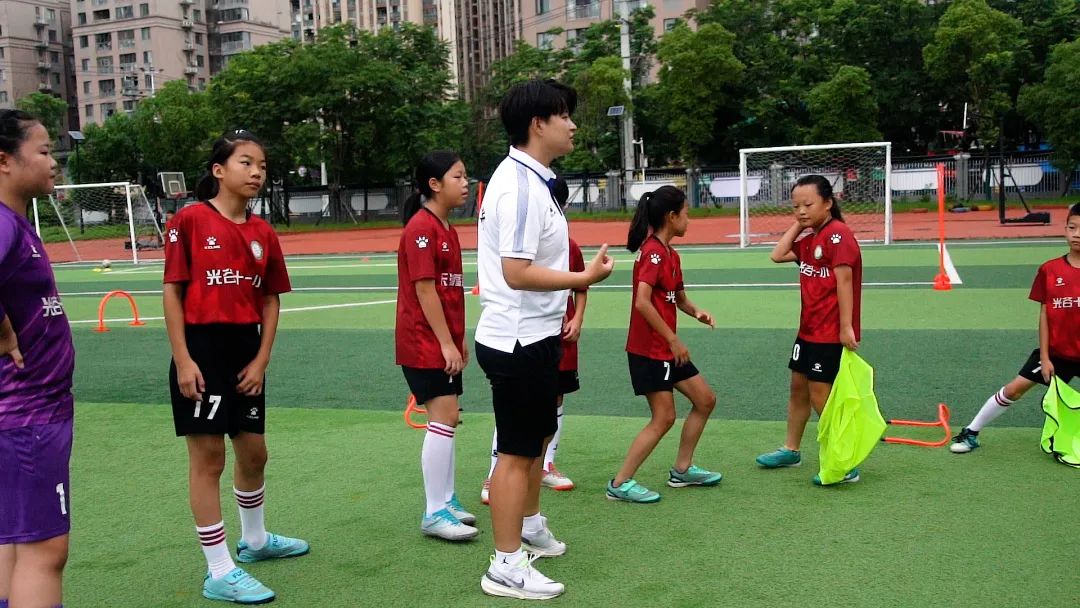 在光谷,女足教练高旭正带领东湖高新区女足挥汗训练。她也曾是一名江大女足队员,是王霜、刘艳秋等人的好友。