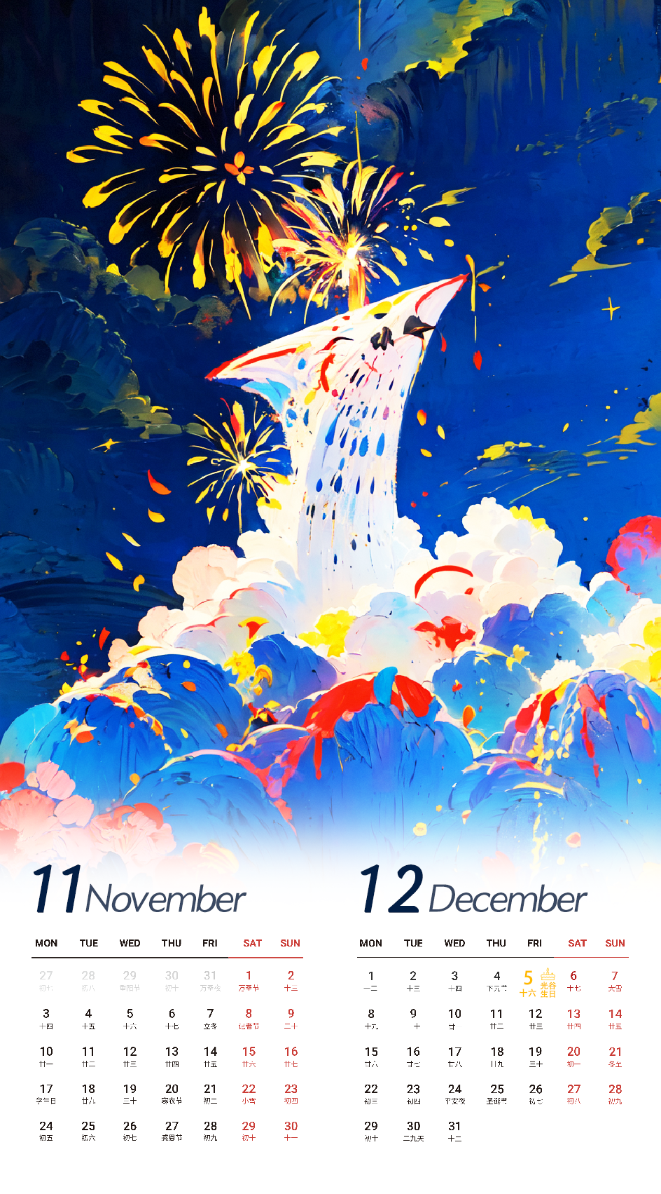 过去的一年令人鼓舞, 新的一年更令人期待! 追光前行的路上, 每一个光谷人都是主角, 每一份努力都弥足珍贵, 每一束光芒都熠熠生辉。 请收下这份AI制作的 光谷“礼花”日历。 愿你的2025年 如烟花般绚烂, 内心澎湃,生活自在。 祝每一位光谷人 所愿皆所成, 多喜乐、长安宁!