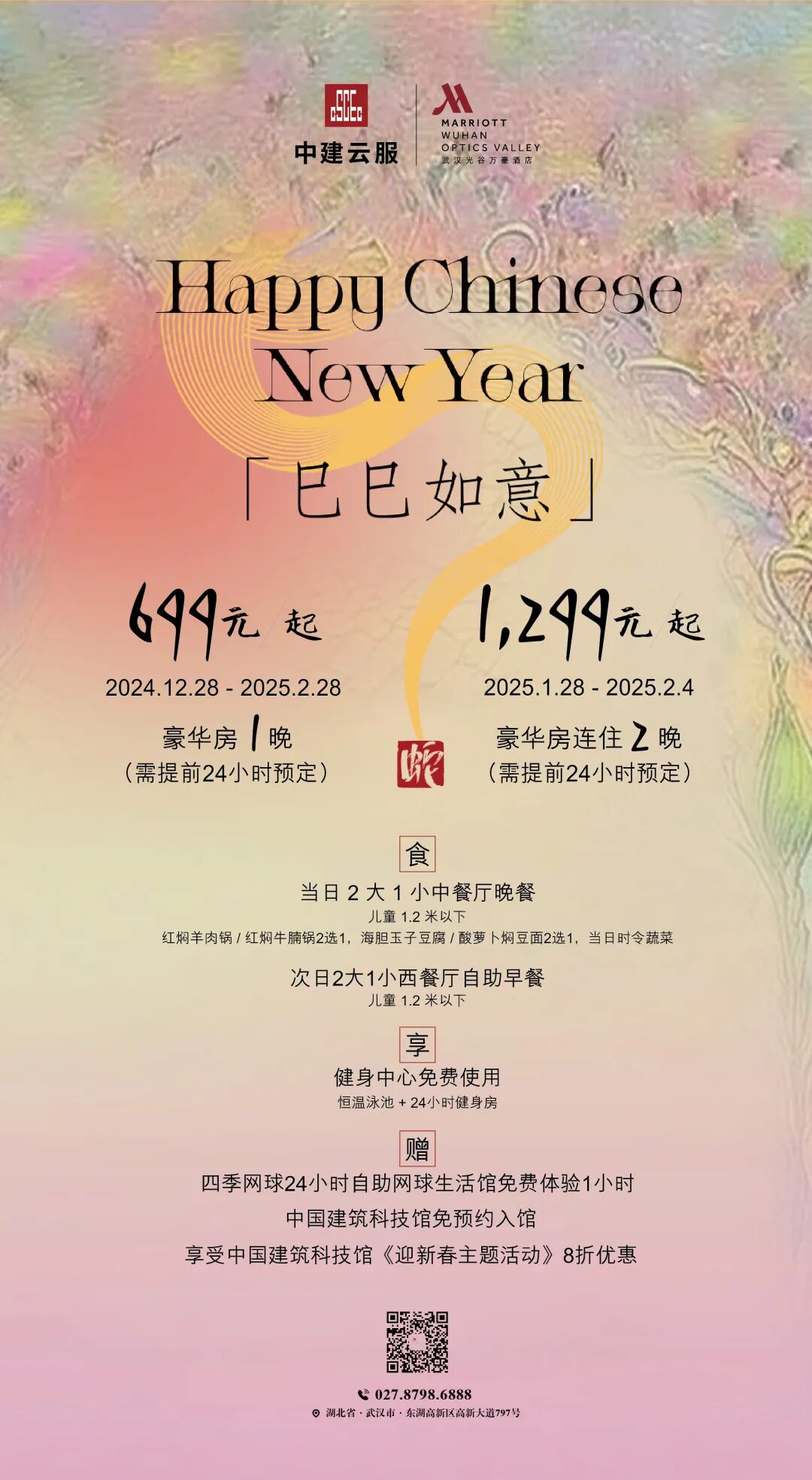 “欢度新春”星河房餐套票:699元光谷星河高级房1晚+2大2小自助早餐+西餐厅双人美墨烤肉套餐