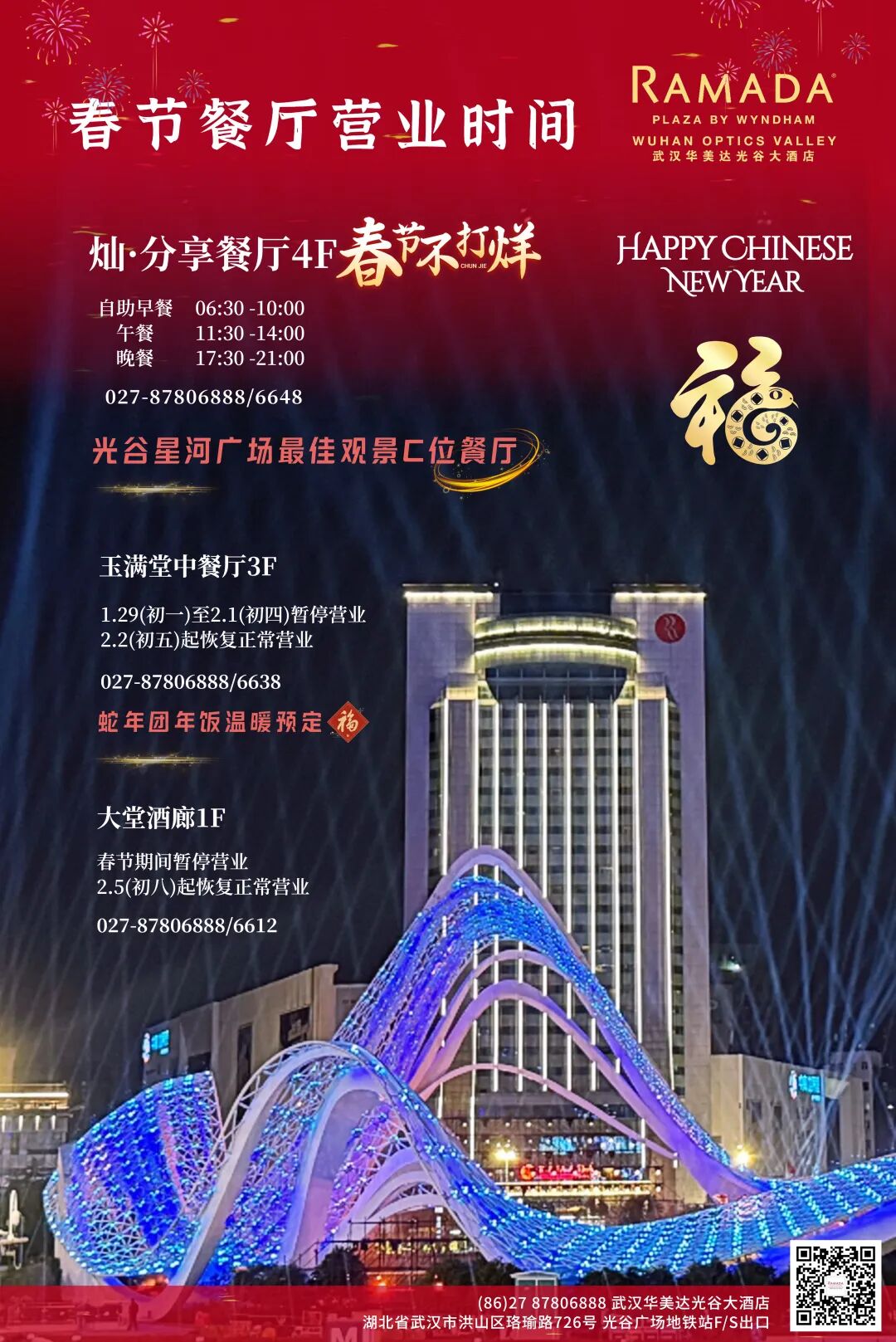 彩丰楼中餐厅 3F午餐:11:30-14:00 晚餐:17:30-21:00春节期间正常营业