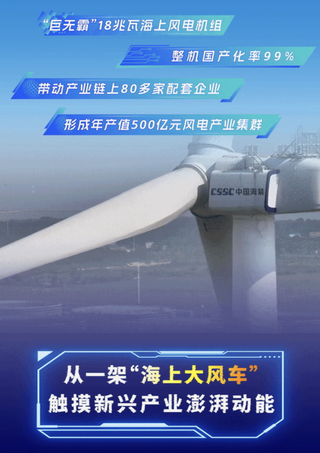 2024年4月,习近平总书记走进重庆科技创新和产业发展成果展示厅,听闻中船海装研制的海上风电机组整机国产化率达99%,很是感慨:“当年我在福建工作的时候,中国还没有海上风电。曾几何时啊!”